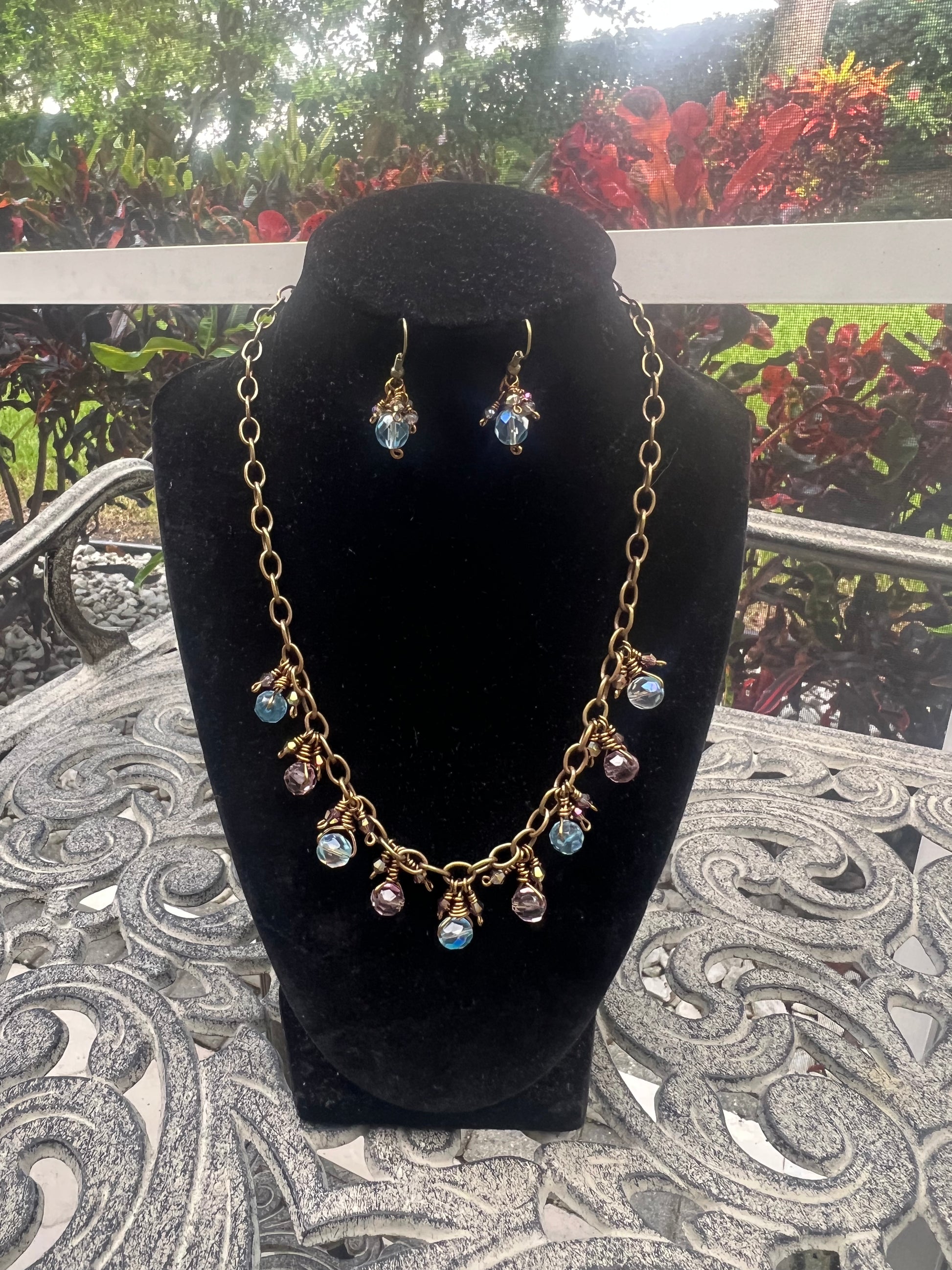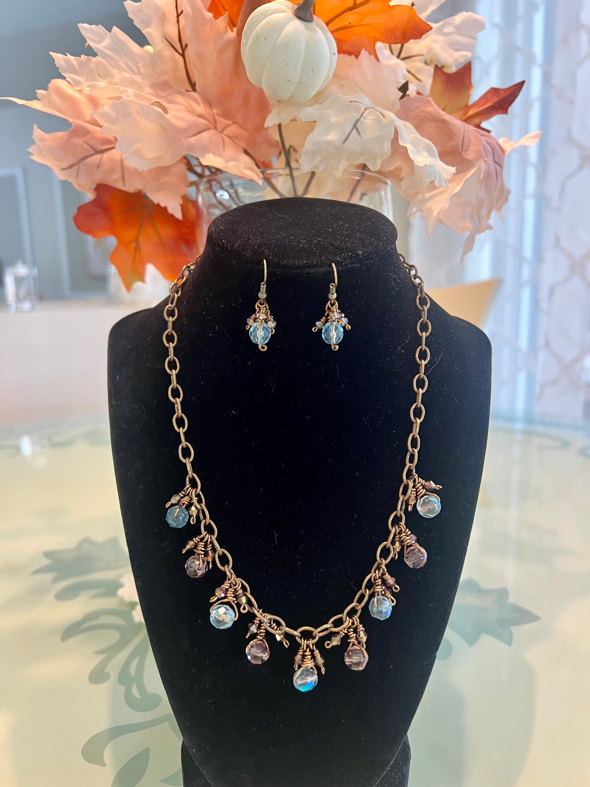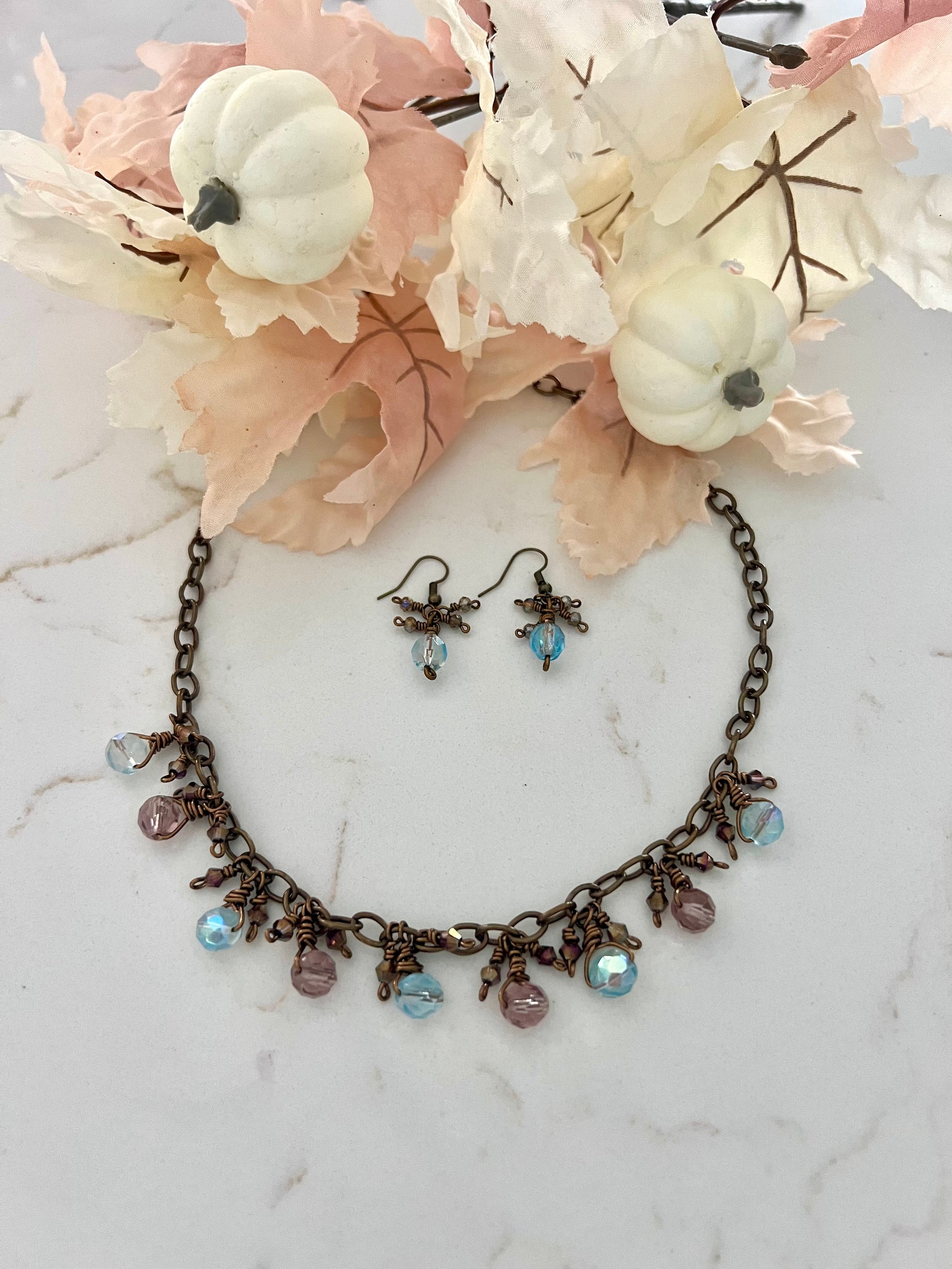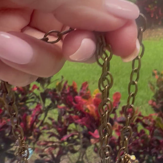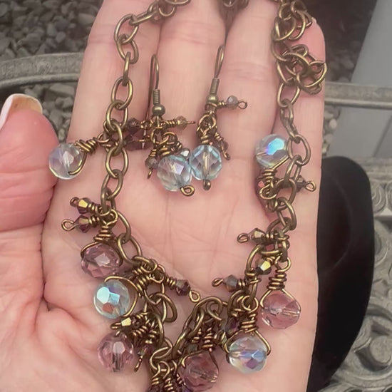 This rustic Czech glass set is made with bronze tone artist wire that is tarnish resistant. These beautiful fire polished faceted Czech glass beads will not disappoint. They are wire wrapped onto the chain with smaller bicone beads in between. Just enough bling and sparkle to elevate this rustic chain!