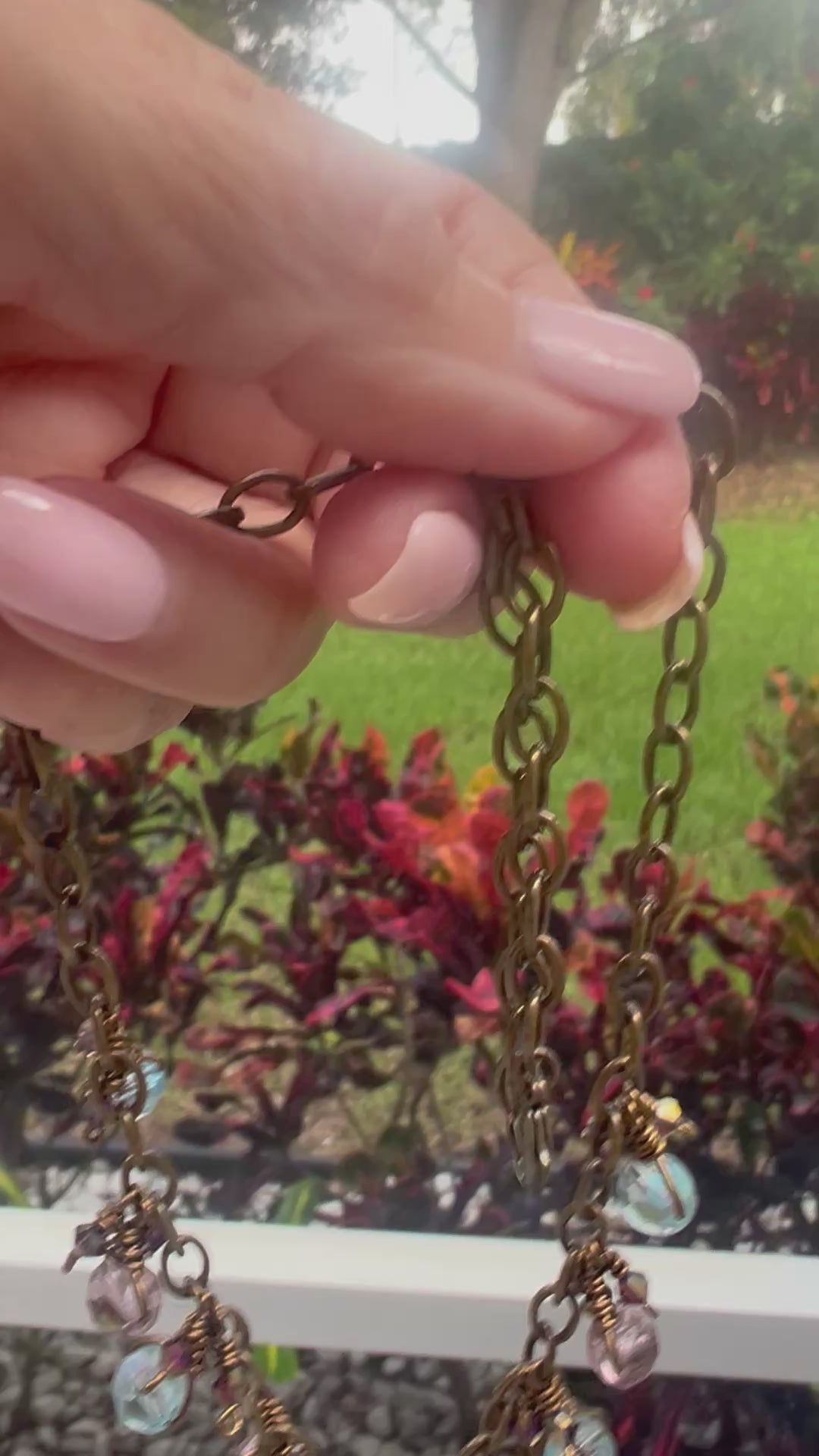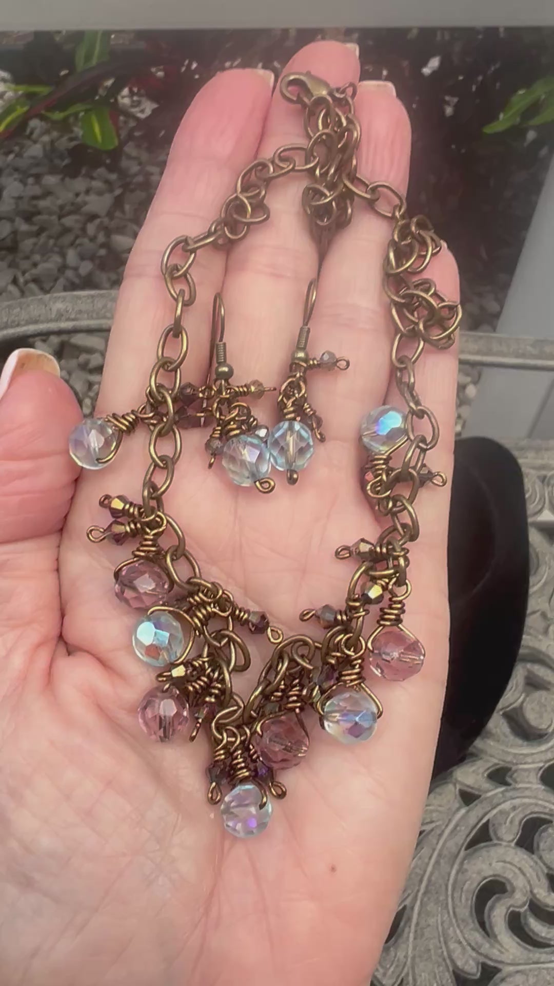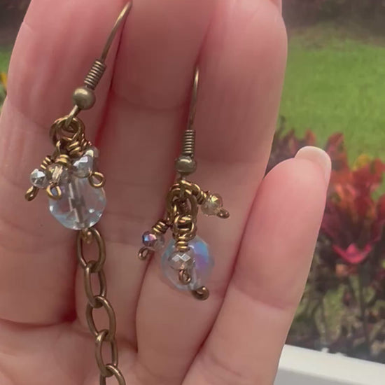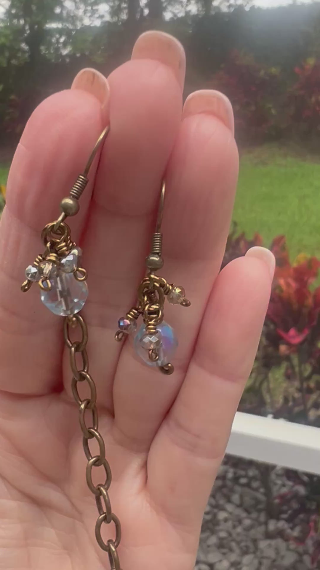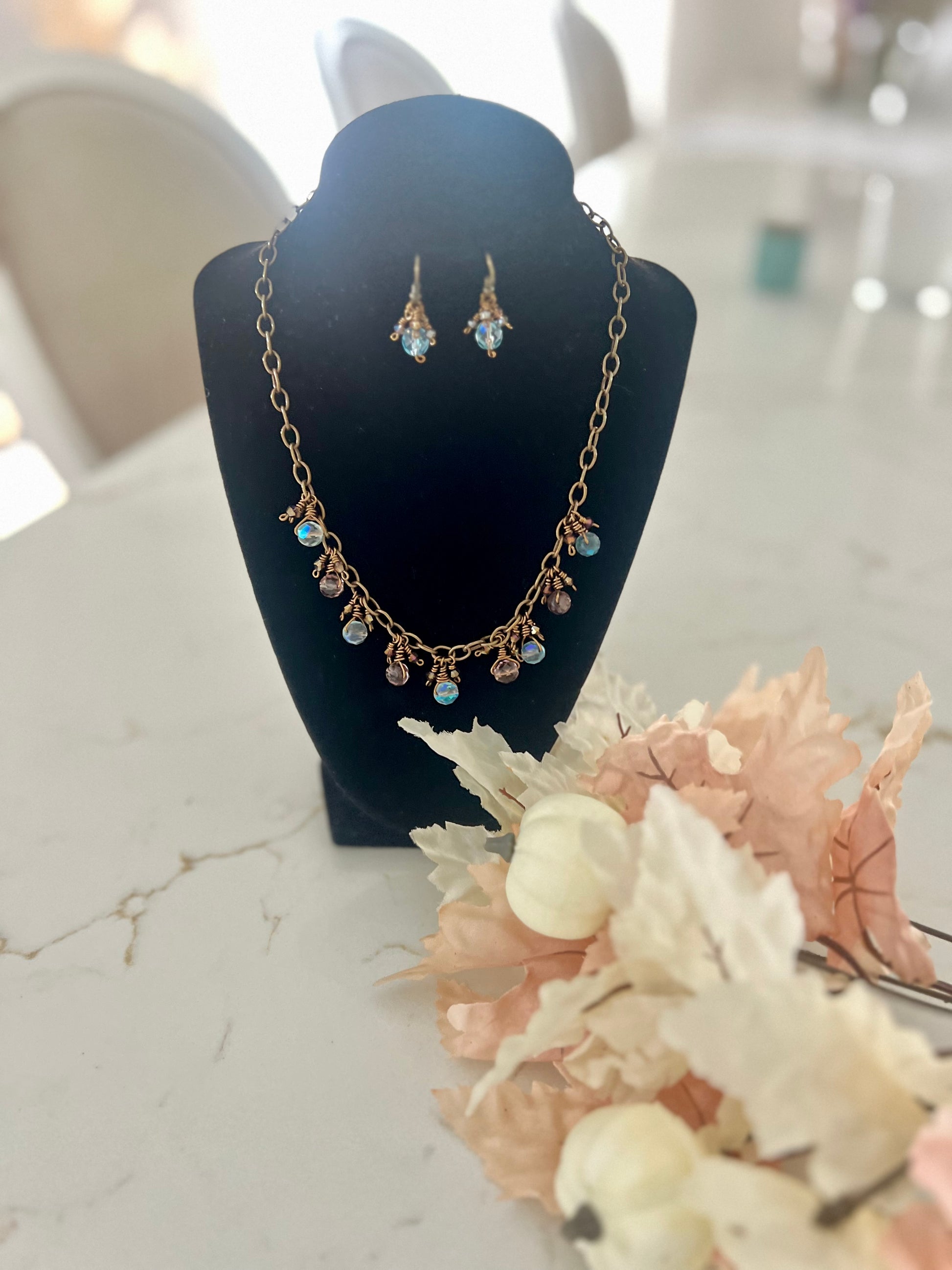 This rustic Czech glass set is made with bronze tone artist wire that is tarnish resistant. These beautiful fire polished faceted Czech glass beads will not disappoint. They are wire wrapped onto the chain with smaller bicone beads in between. Just enough bling and sparkle to elevate this rustic chain!